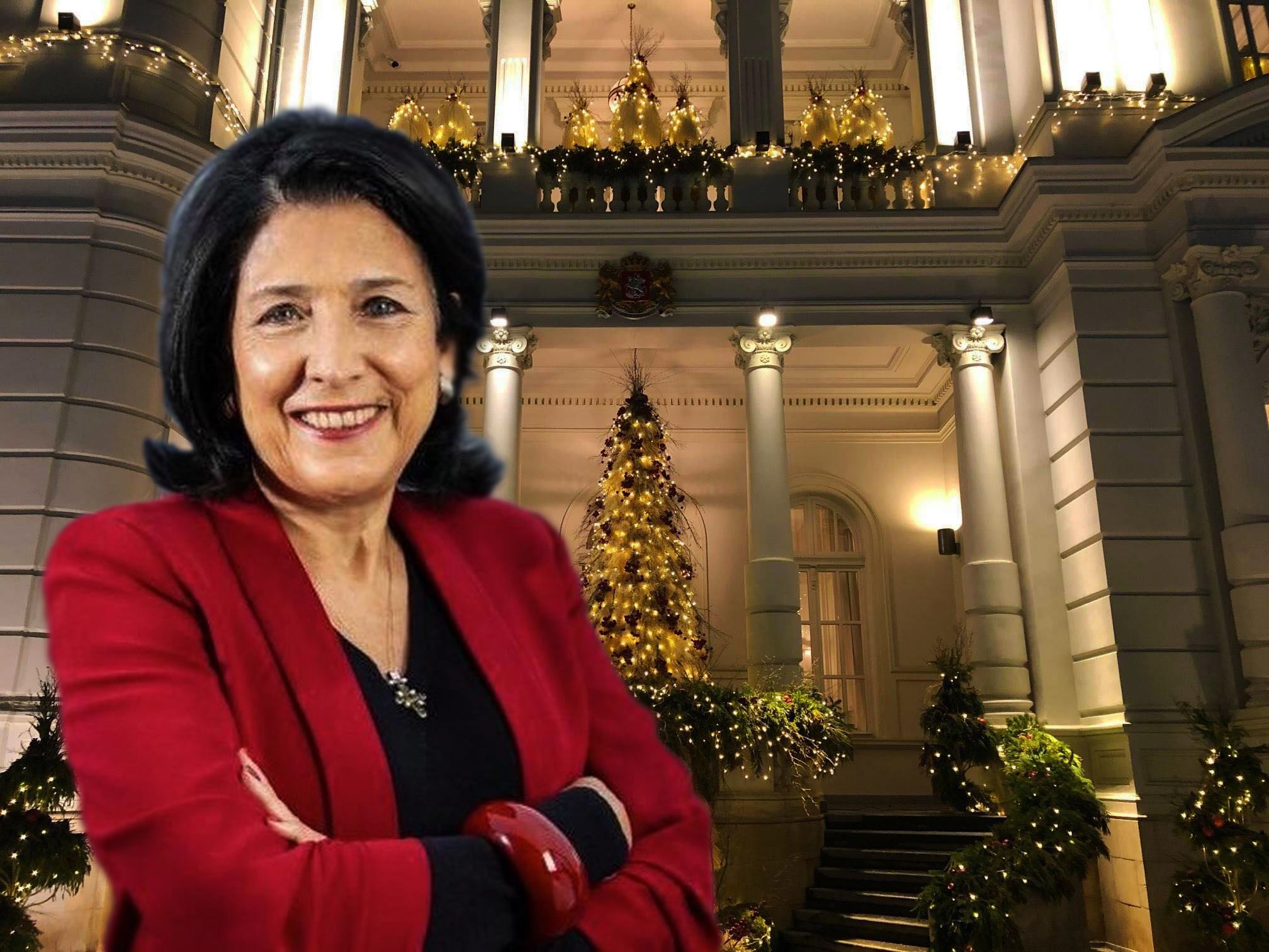საახალწლო სამზადისზე უარი არც ქვეყნის პრეზიდენტმა სალომე ზურაბიშვილმა თქვა. მისი რეზიდენცია ჯადოსნურ სასახლეს ჰგავს.